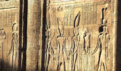 La característica más significativa de la decoración es la serie de textos escritos en sus columnas. Proporcionan una descripción abundante y detallada de las fiestas del año sagrado de Esna, presentado en la forma esquemática de un calendario y grabado también en una columna. Hay, además, una excelente pareja de himnos criptográficos a Jnum, uno escrito casi exclusivamente con jeroglíficos de carneros, y el otro escrito con cocodrilos.